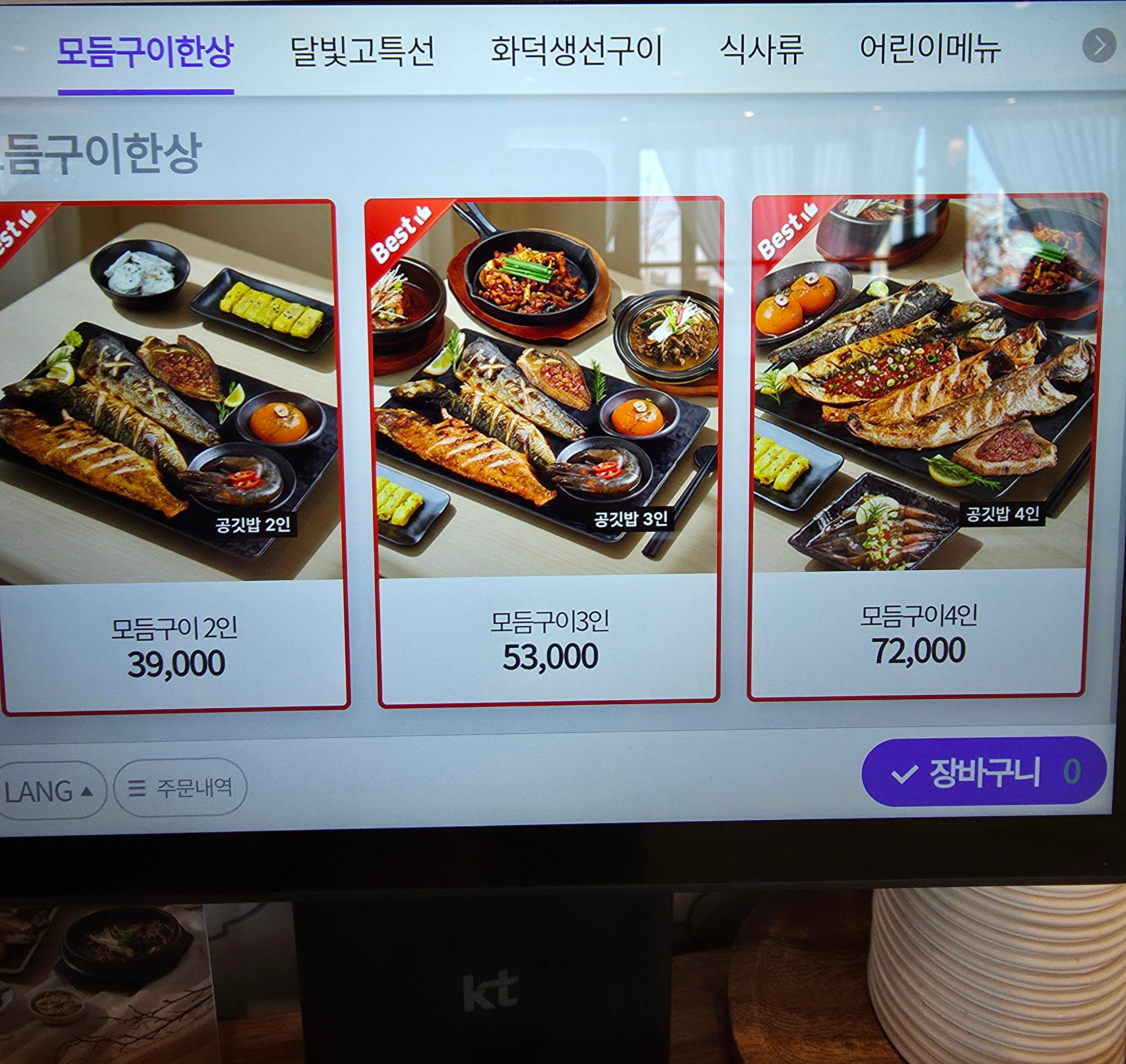 그중에서도 모듬구이 한상이 가장 인기 메뉴처럼 보였어요.